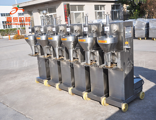 本機采用SUS304不銹鋼制造,具有美觀大方,堅固耐用,操作維修方便,效率省電等特點,可制作各類爽口、有韌性、有彈性的肉丸。肉丸機主要用于雞肉丸、魚丸、蝦丸、豬肉丸、牛肉丸、羊肉丸、驢肉丸、蔬菜丸、海鮮丸等。肉丸生產線的主要設備有絞肉機、刨肉機、拌餡機、斬拌機、肉丸機、成型水槽、油炸生產設備等。肉丸機分機械調速和變頻調速兩種。丸子大小可更換模具。