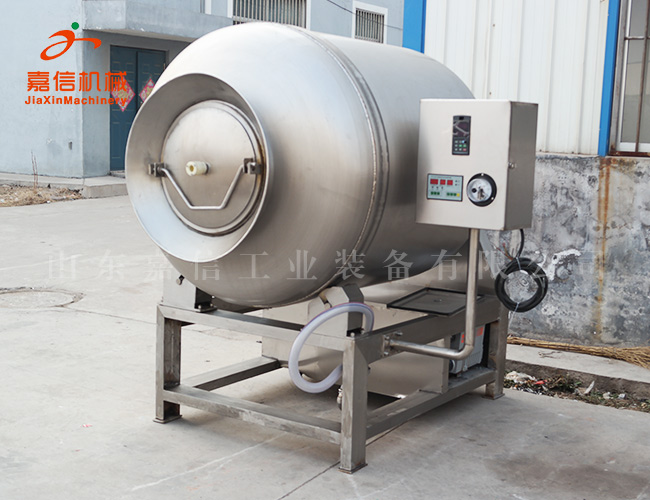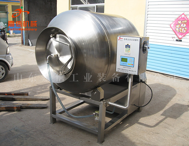 真空滾揉機是在真空狀態(tài)下,利用物理沖擊的原理,讓肉在滾筒內(nèi)上下翻動,相互撞擊、摔打,達到按摩、腌漬作用,使肉均勻的吸收腌漬,提高肉的結(jié)著力及產(chǎn)品的彈性;本機具有肺呼吸功能,讓產(chǎn)品在滾筒內(nèi)膨脹、縮小了往復運動,改善了肉組織的結(jié)構(gòu),提高了切面效果,增加了出品率??梢栽鰪姳K?,改善產(chǎn)品的內(nèi)部結(jié)構(gòu)。
