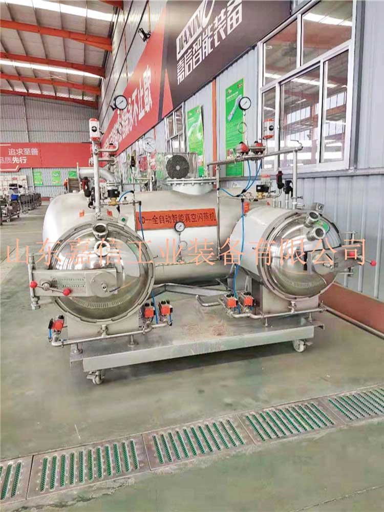 全自動果蔬脆片膨化線實現(xiàn)了果蔬加工從油炸到非油炸的飛躍,采用的果蔬壓差膨化干燥技術(shù),是一種新型、環(huán)保、節(jié)能的非油炸膨化干燥技術(shù),其基本原理是將經(jīng)過預(yù)處理的水果或蔬菜原料,在膨化罐中升溫加壓,一段時間后瞬間泄壓,物料內(nèi)部水分瞬間汽化蒸發(fā)膨脹,并在真空狀態(tài)下脫水干燥,進而實現(xiàn)體積膨脹、口感酥脆的果蔬膨化休閑食品。