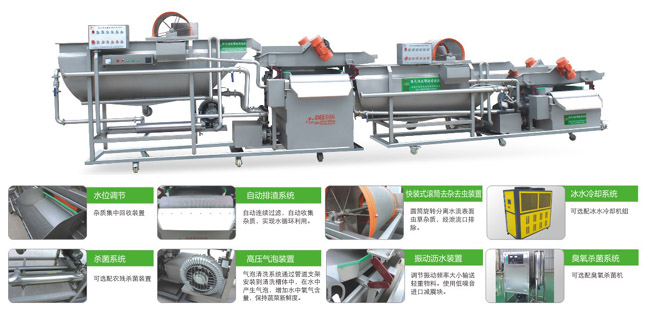 自動提升+一次臥式渦流螺旋清洗+一次振動瀝水+二次臥式渦流螺旋清洗+二次振動瀝水,漩流+氣泡雙重清洗,用于消除傳統(tǒng)漩流式洗菜機在清洗未經(jīng)切割蔬菜清洗時產(chǎn)生的抱團現(xiàn)象,高壓氣泡能夠有效分離成團的蔬菜,解決純漩流式洗菜機只能清洗切割后物料的尷尬弊端。排氣管更配備有泄壓閥,以適應清洗不同物料時調(diào)整氣泡強度。